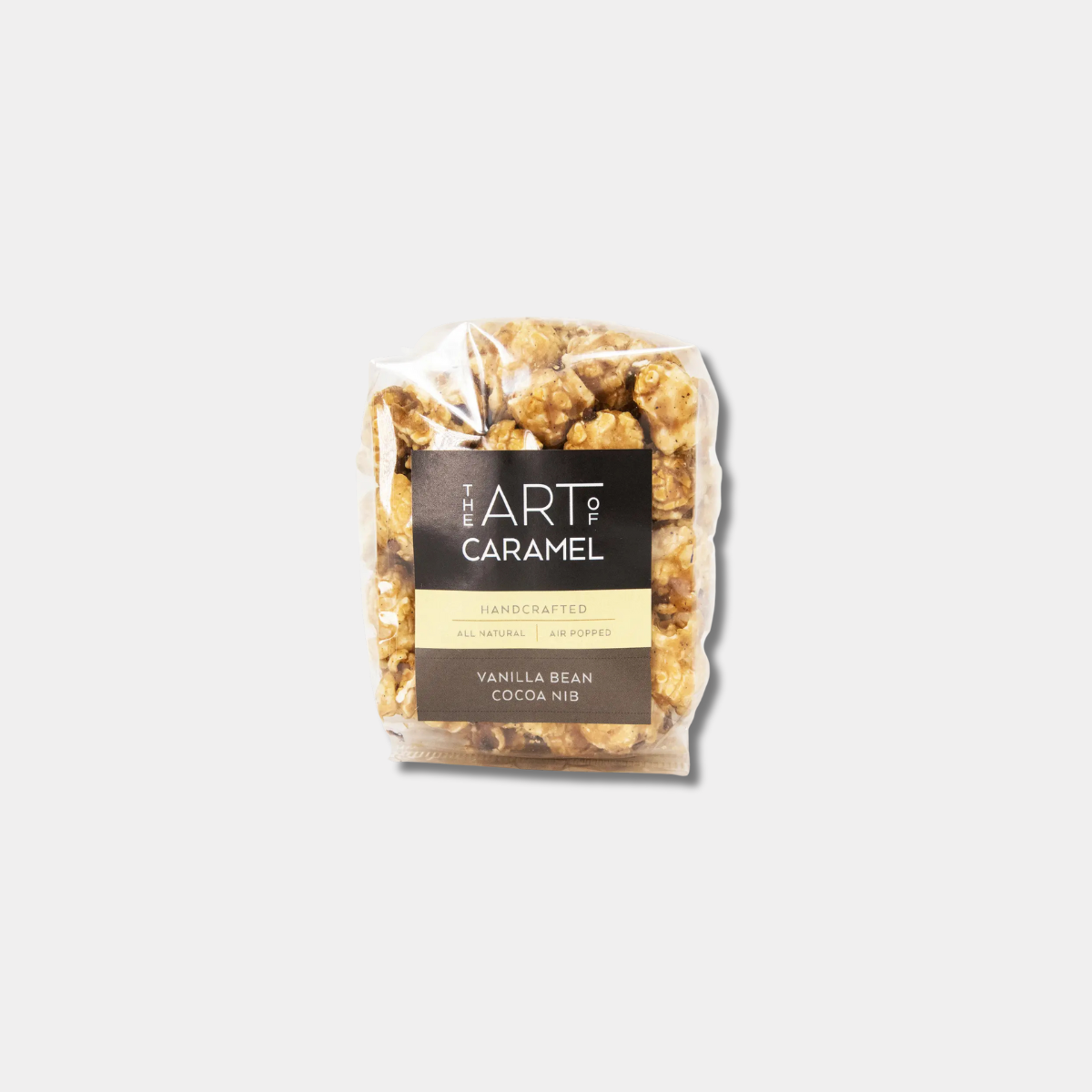 Velvety smooth caramel coats our non-gmo popcorn while the sweet scent of vanilla beans tickles your nose. Top it off with crunchy caramelized pieces of cocoa nib and you have the very best snack around!